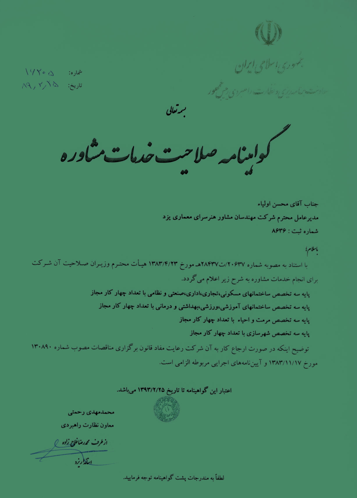 مهندسان مشاور هنرسرای معماری یزد با دیدگاهی مبتنی بر احترام به ارزشها و مبانی جمهوری اسلامی، متعهد به اخلاق حرفهای و هنجارهای اجتماعی و فرهنگی و با امید به حضور موثر و تاثیرگذار در عرصه فعالیتهای ملی و بینالمللی و با هدف ارتقاء کیفی طراحی و ساخت در اسفند ماه سال 1385 فعالیت خود را آغاز و تاکنون رتبهبندی سازمان مدیریت و برنامهریزی را در تخصصهای “ساختمانهای آموزشی، ورزشی، بهداشتی و درمانی”، “ساختمانهای مسکونی، تجاری اداری، صنعتی و نظامی”، “شهرسازی” و “مرمت و احیاء” را اخذ نموده است.